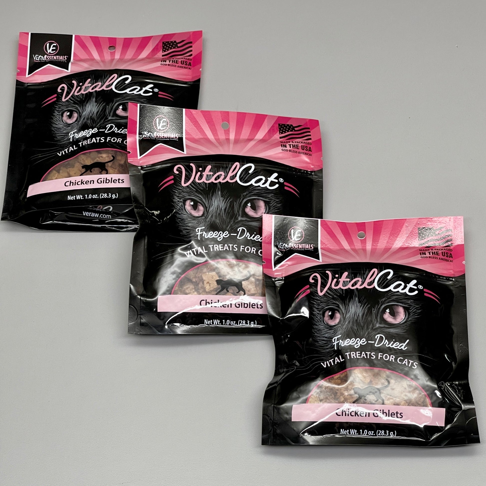 VITAL ESSENTIALS 3 Pack of Freeze-Dried Chicken Giblets Cat Treats 1 oz (10/24)