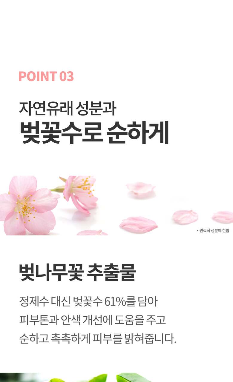 - It gently brightens your skin with 61% Prunus Serrulata Flower water extract.