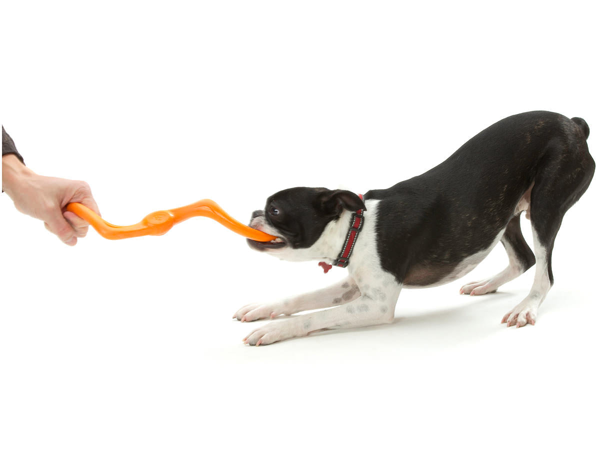 Flexing to twice its length during tug-o-war, this S-shaped dog toy is a favorite among pets and their people. The smart design makes it fly far and dogs love to carry it around in their mouths as it's lightweight but tough. Great for fetch or flinging, Bumi is one of our most beloved toys.