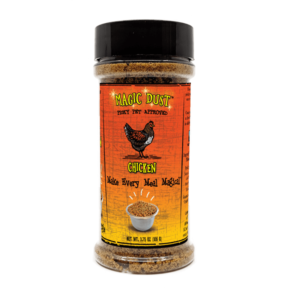 Our Magic Dust is made with high quality, minimal ingredients. It is an excellent feeding solution for pets who won't eat, are transitioning to a new food, or who just want a new flavor with their meals. Just shake on and mix in the Magic Dust with your pet's food (no matter what kind) and make every meal magical. We also recommend adding a little water to the bowl if desired.