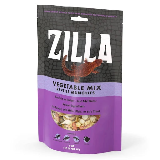 Nutritious Zilla® Reptile Munchies contain dehydrated ingredients that are quick and convenient with no refrigeration required! The natural ingredients are ideal for feeding alone, in addition to leafy greens, pellet diets or as a treat. The many varieties allow you to choose one or more that best suit your animal!